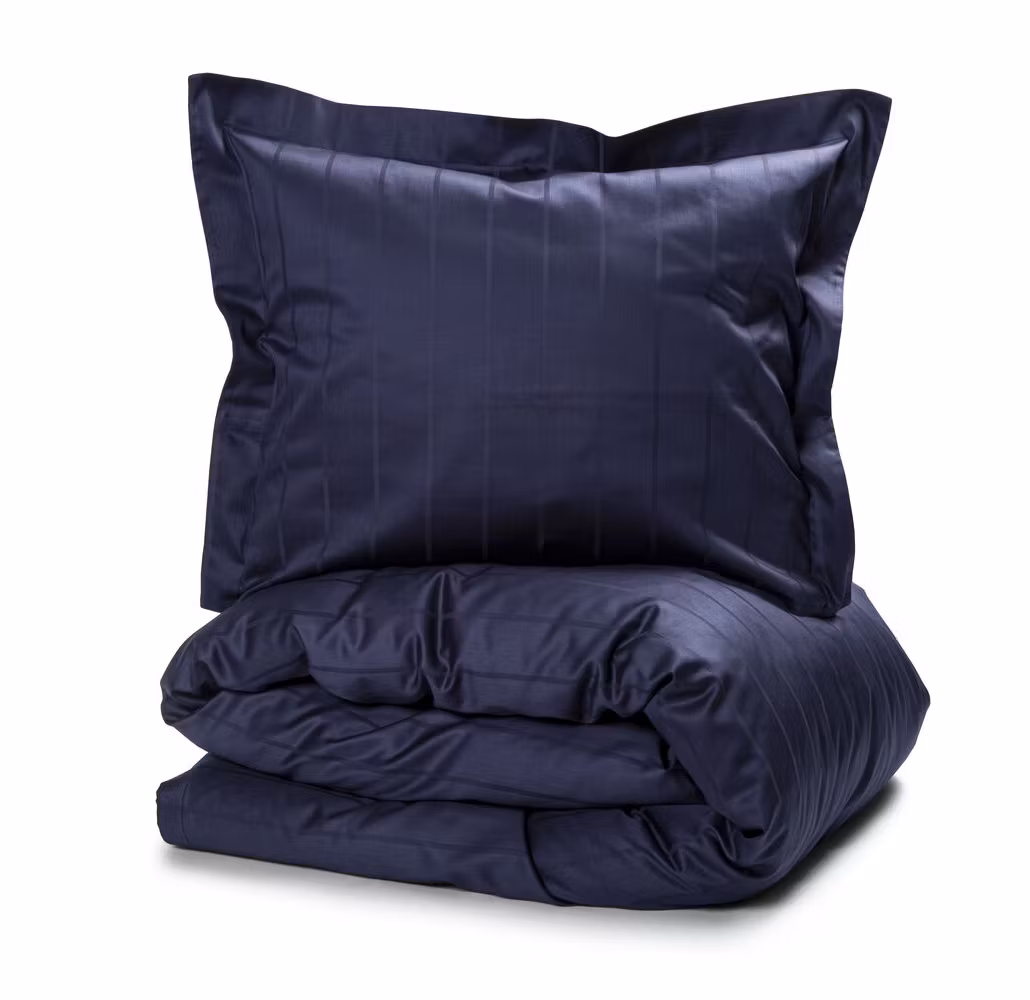 Ge sovrummet en känsla av vardagslyx med Bäddset Liverpool Satin från Kosta Linnewäfveri. Detta eleganta och stilrena bäddset är tillverkat i exklusiv bomullssatin och har ett subtilt randmönster med smala lodräta ränder som ger tyget en vacker lyster och en sofistikerad struktur.