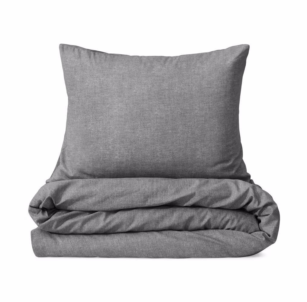 Stilrent bäddset i mjuk bomull med melerad grå design. Tidlös och elegant stil som gör sängen enkel att matcha och extra inbjudande