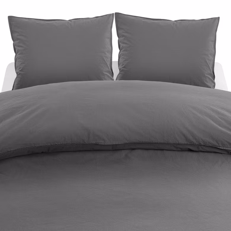 Påslakanet har hörnhål upptill för smidig bäddning, medan örngottet har kuvertöppning som håller kudden på plats hela natten.