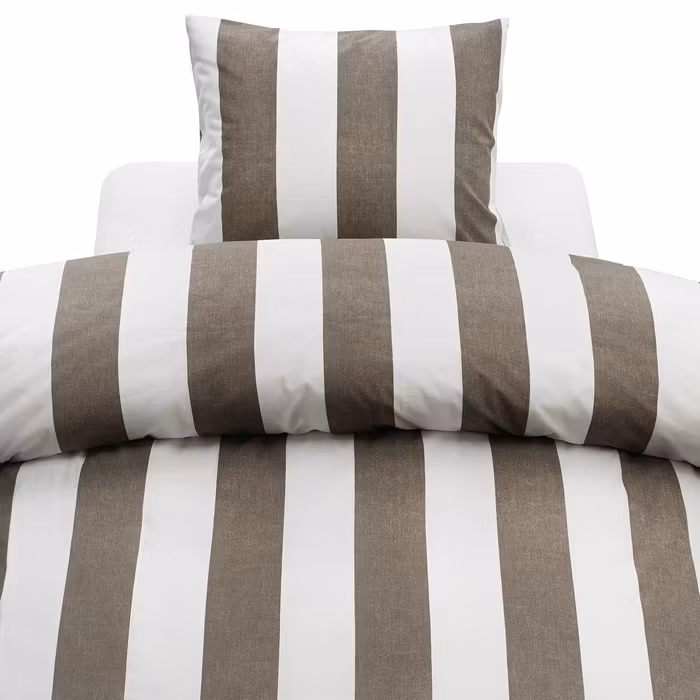 Block Stripe Brun Randigt Bäddset 150x210 Borganäs of sweden
