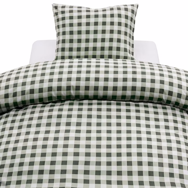 Turild Grön Bäddset Enkeltäcke 150x210 cm – Klassisk ruta i fräsch grönskala från Harmony