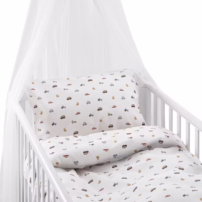 Bäddsetet är tillverkat av 100 % bomull, vilket gör det både andningsbart och skonsamt mot huden.