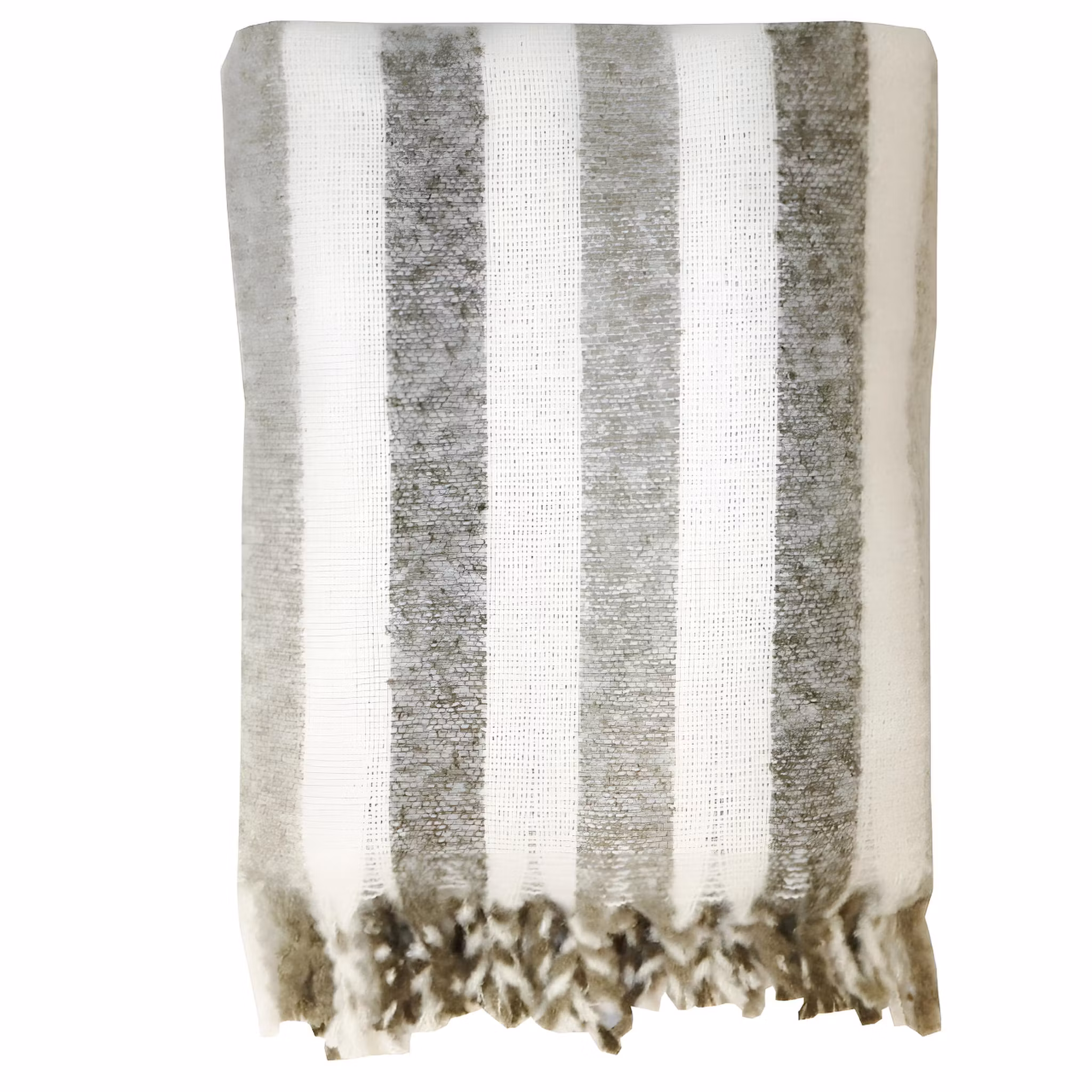 Den neutrala nyansen gör att pläden enkelt kan matchas med andra textilier såsom kuddfodral, överkast eller gardiner för en harmonisk helhet.